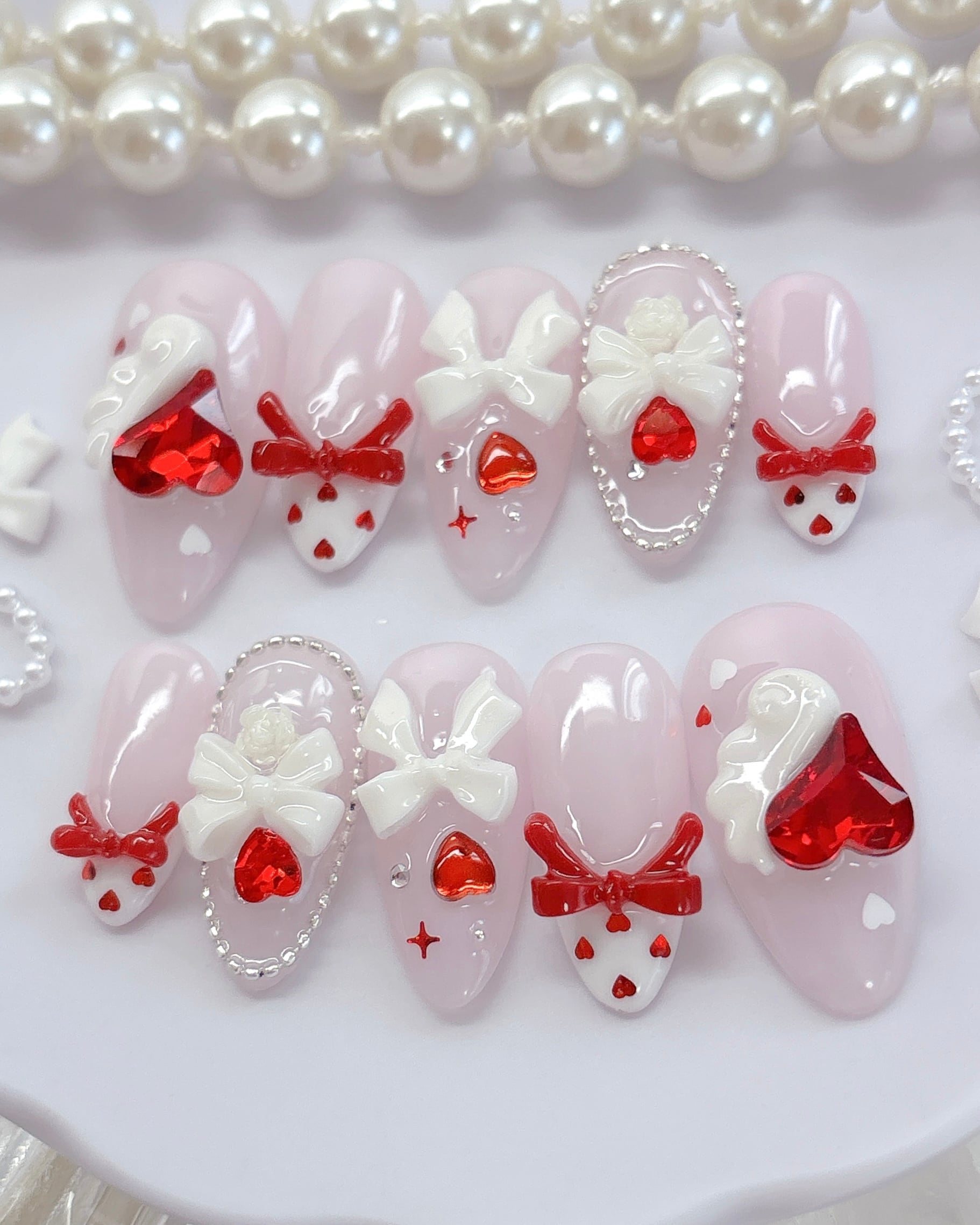 ピンク×赤ハート 量産型ネイルチップ