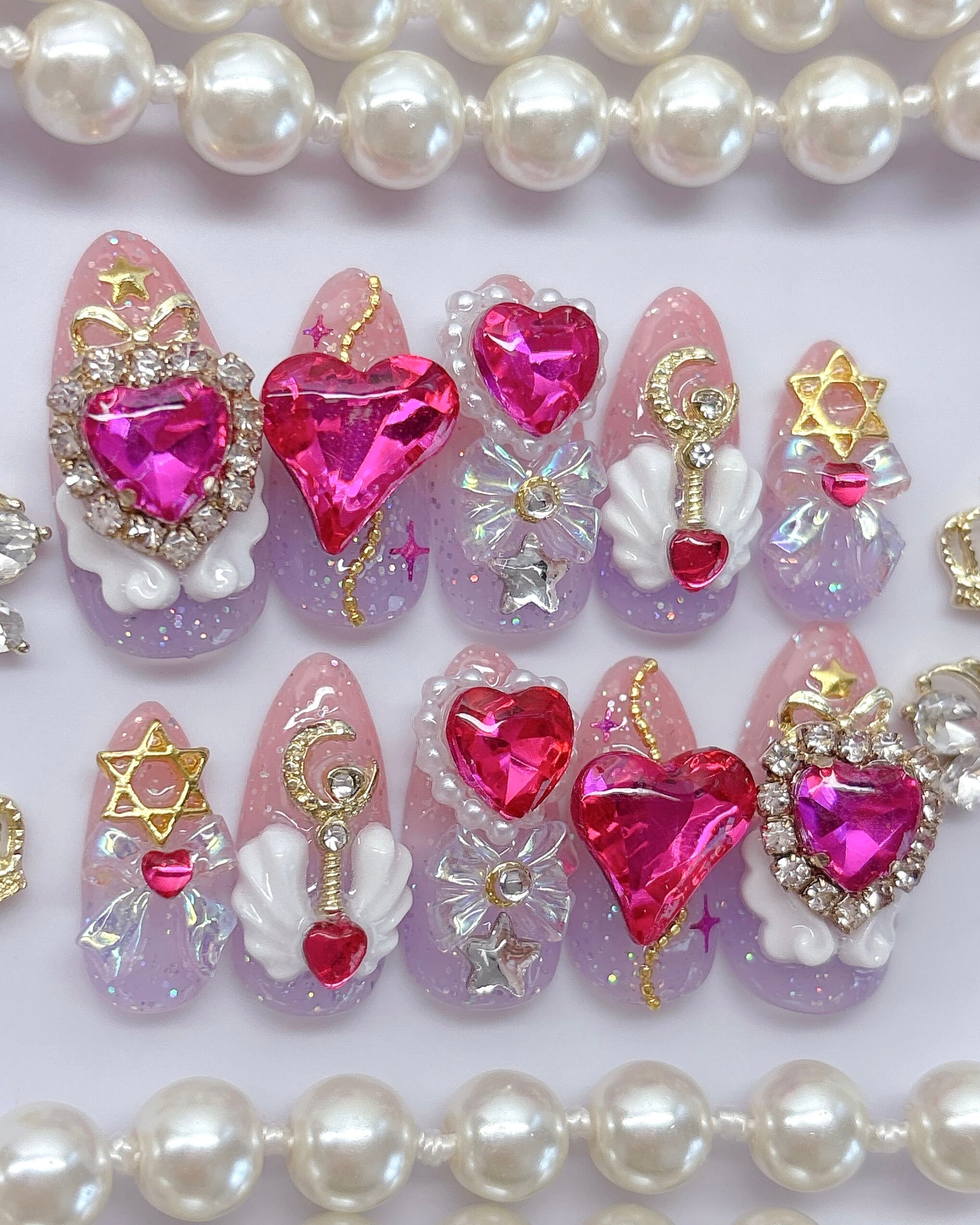 ゴテゴテ魔法少女♡ネイルチップ・ピンク紫
