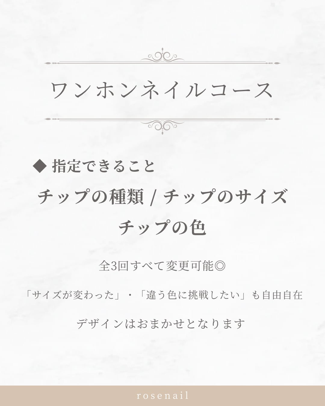 ・モチーフネイルコースをご利用の方で、期間内にデザインのご連絡がない場合は「おまかせデザイン」で制作いたします。