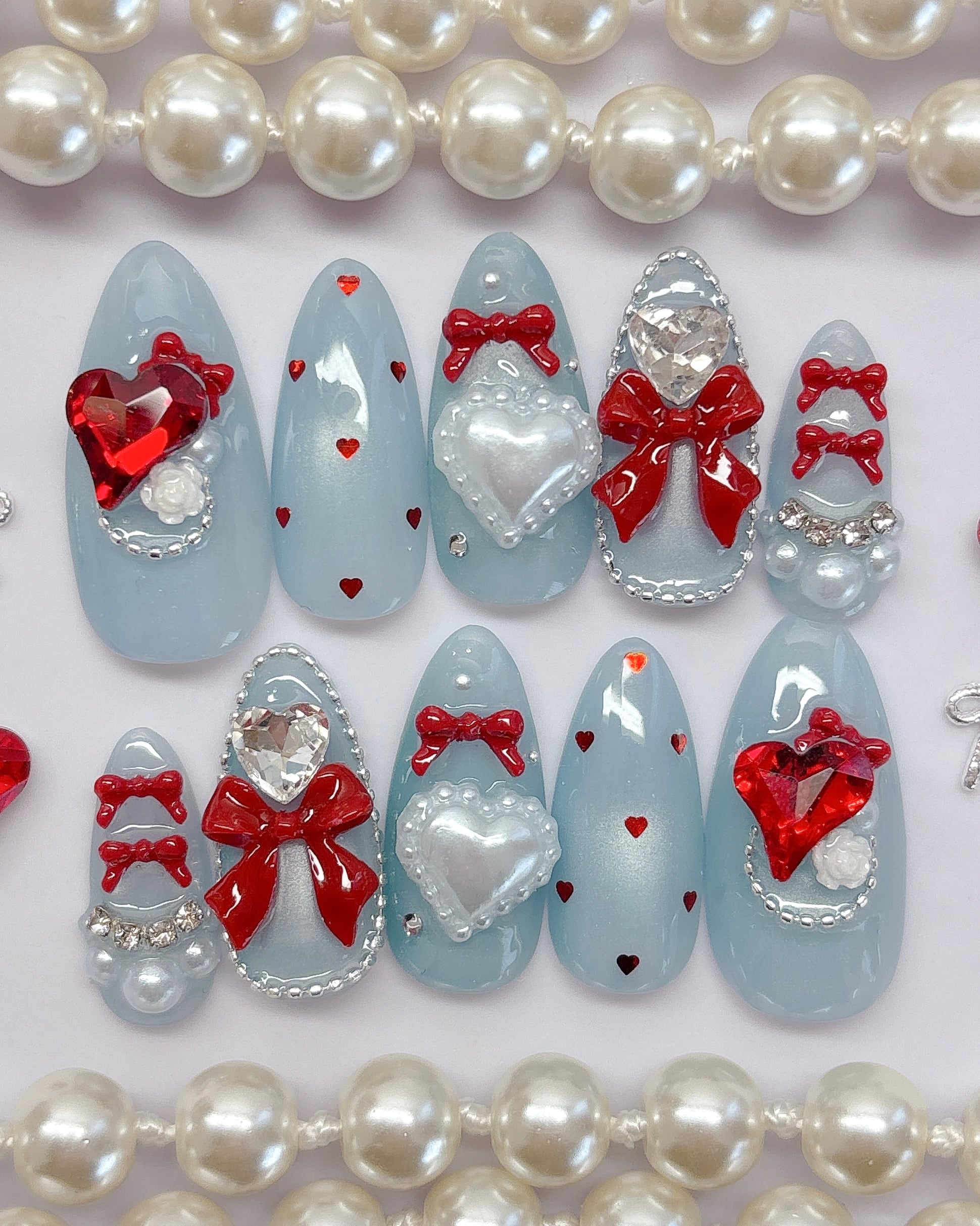【4月限定!即発送】ブルー×赤 ガーリー アイドル衣装風 ネイルチップ